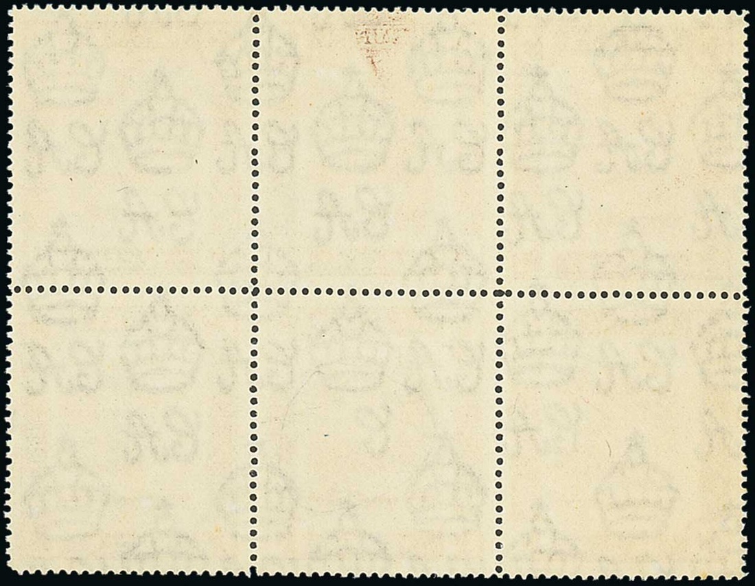 1947-51 perf 14 1c. chocolate, a fine unmounted mint block of six (3x2), the centre stamp in the lower row showing