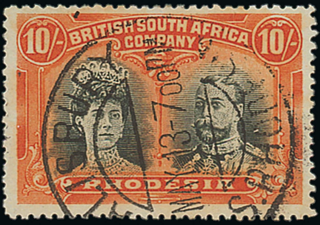 10/- deep myrtle and orange, neatly cancelled-to-order with large part Salisbury datestamp. S.G. 163, £300. Photo