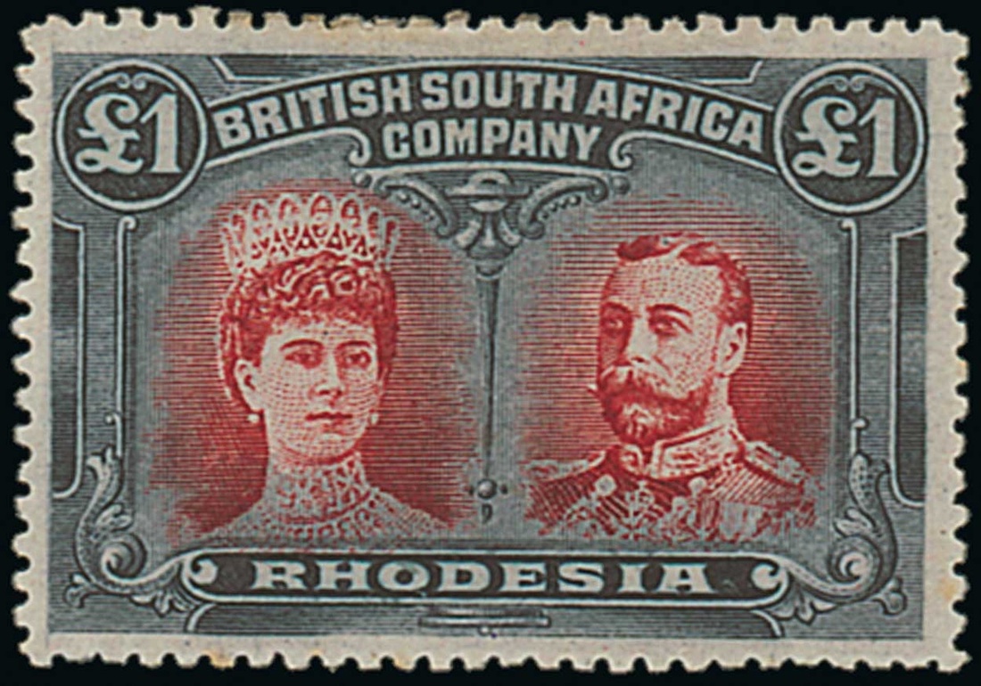 £1 carmine-red and bluish black, good strong colours and with part original gum. S.G. 165, £1,700. Photo