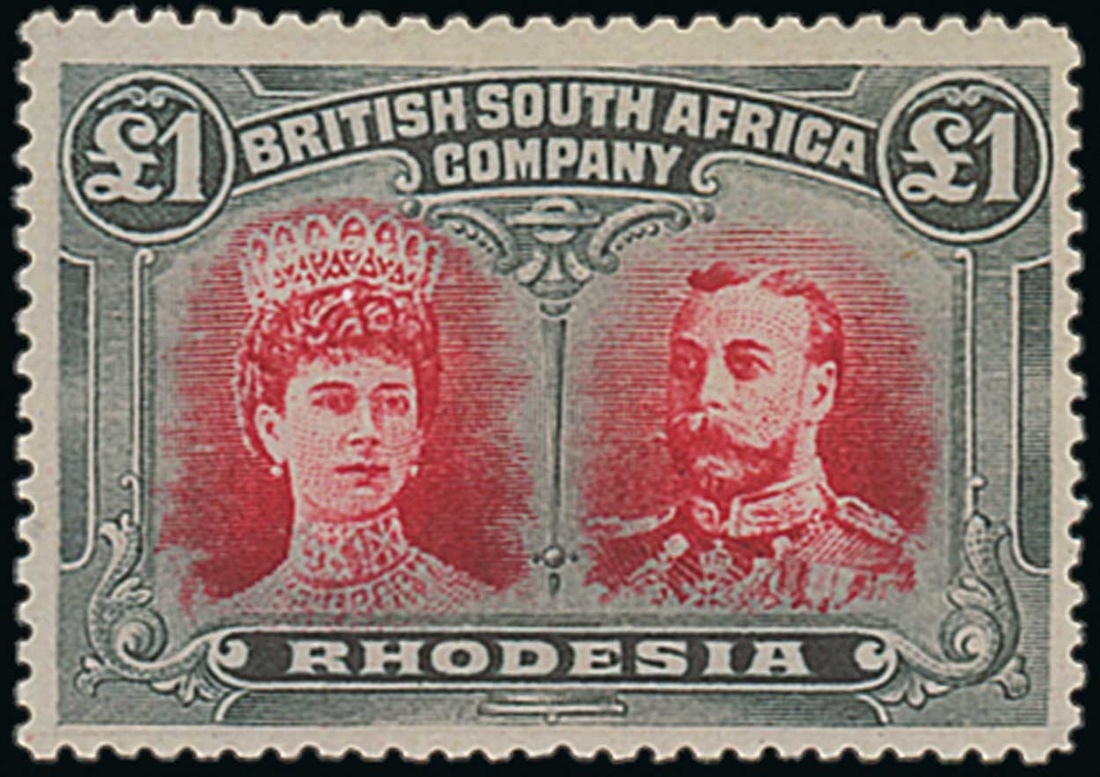 £1 (bright) carmine and (greenish blue) slate, part original gum; short gum crease towards foot. S.G. 165 group. Photo