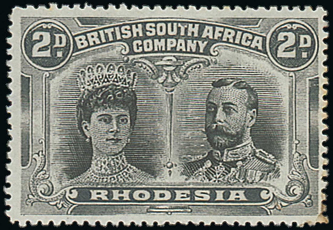 2d. black and grey-black, large part original gum; small gum bleed at lower right corner and faint tones on a few perfs. at right, otherwise fine. S.G. 171. Photo