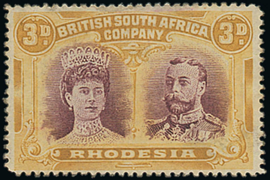 3d. purple and yellow-ochre, RSC "G", regummed and a fraction soiled at top, otherwise sound and a presentable example of this very rare stamp. S.G. 173 group, £9,000. Photo