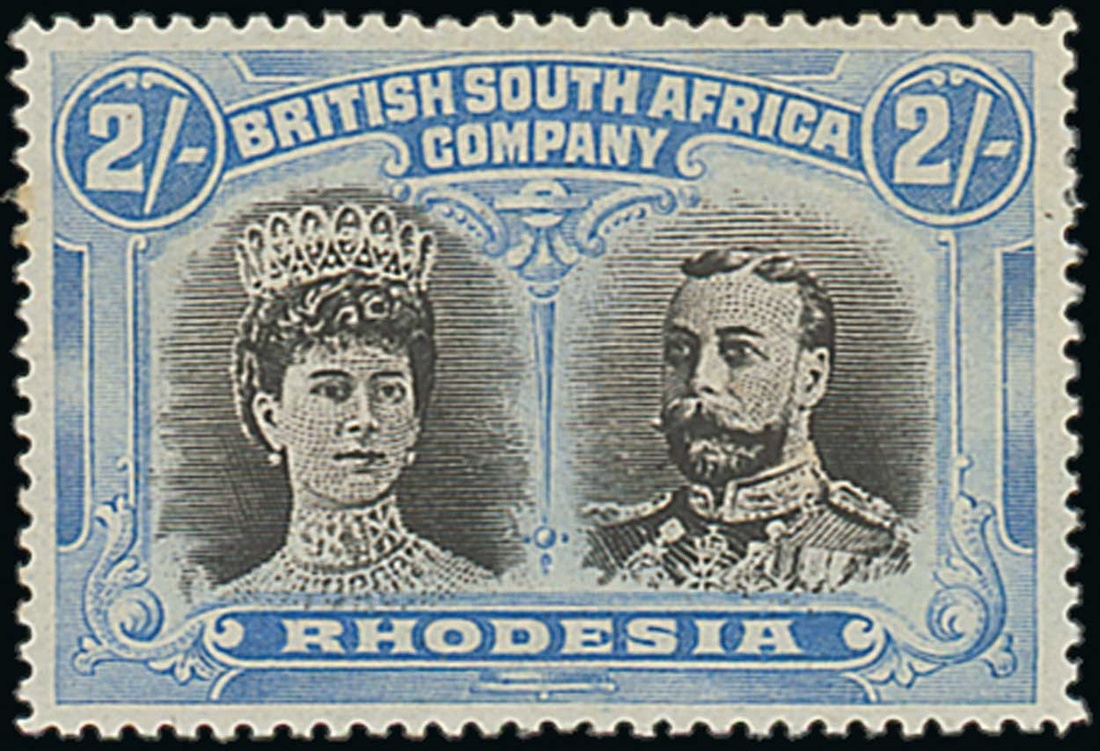 2/- black and dull blue, RSC "B?", fresh with large part original gum. An attractive example of this rare stamp. S.G. 178, £2,250. Photo
