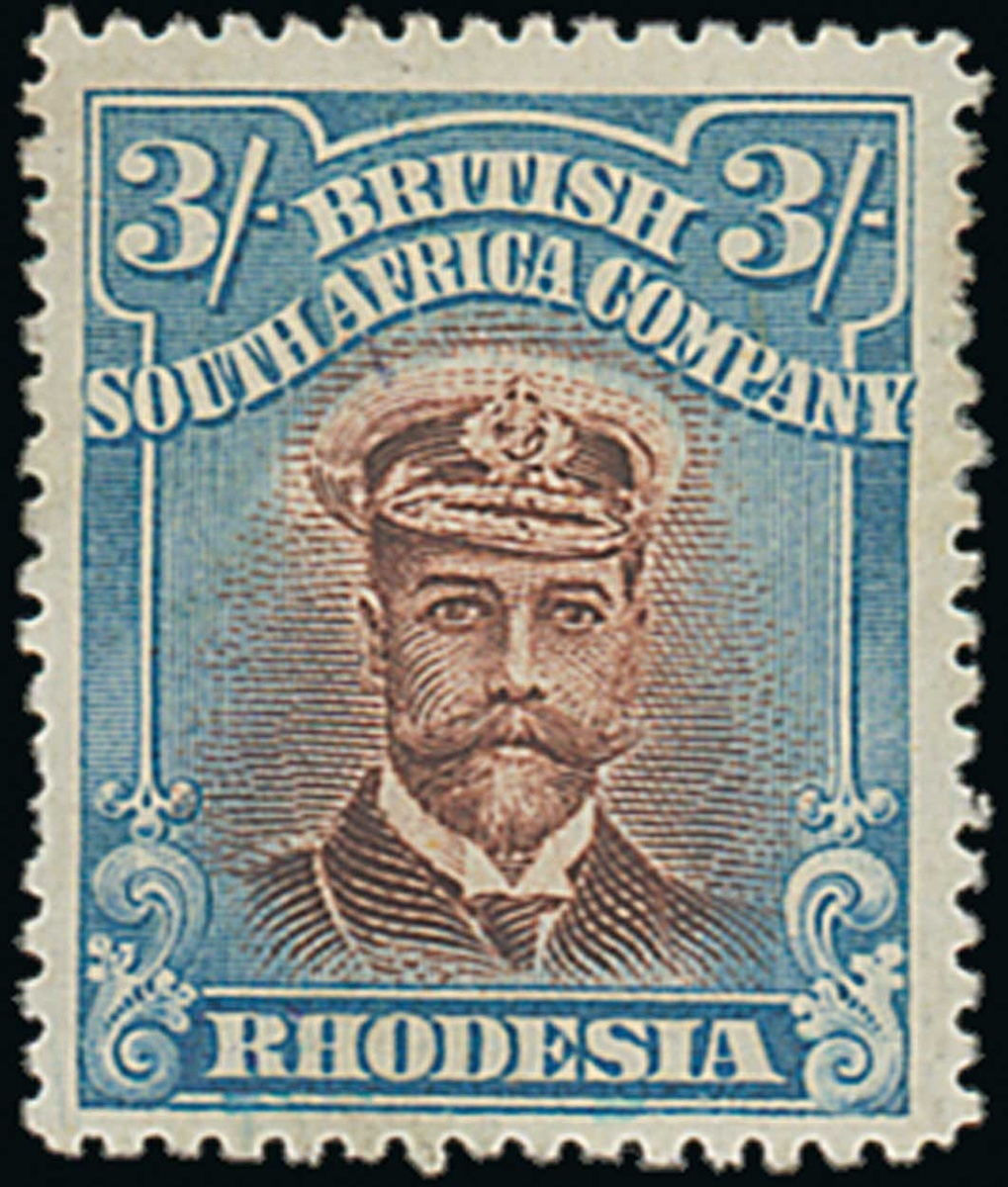 3/- chocolate and blue, mint with a large hinge remainder. Scarce. S.G. 250, £750. Photo