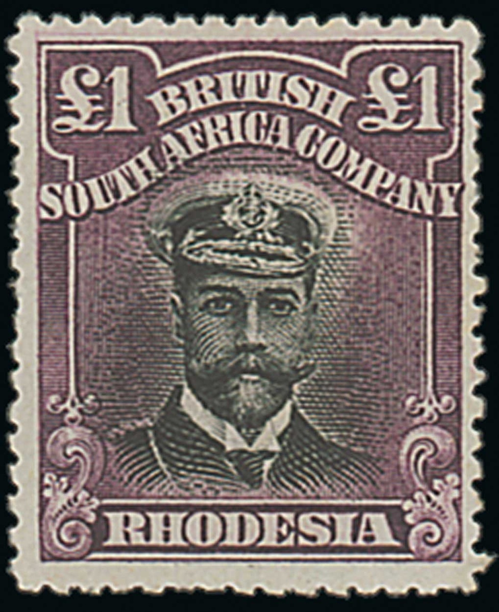 £1 black and purple, part original gum; a couple of shortish perfs. at foot, otherwise sound. Scarce. S.G. 254, £1,800. Photo