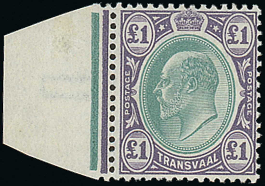 1903 CA £1 green and violet, marginal, fresh unmounted mint; very fine. S.G. 258, £375; R11,000 for unmounted mint. Photo