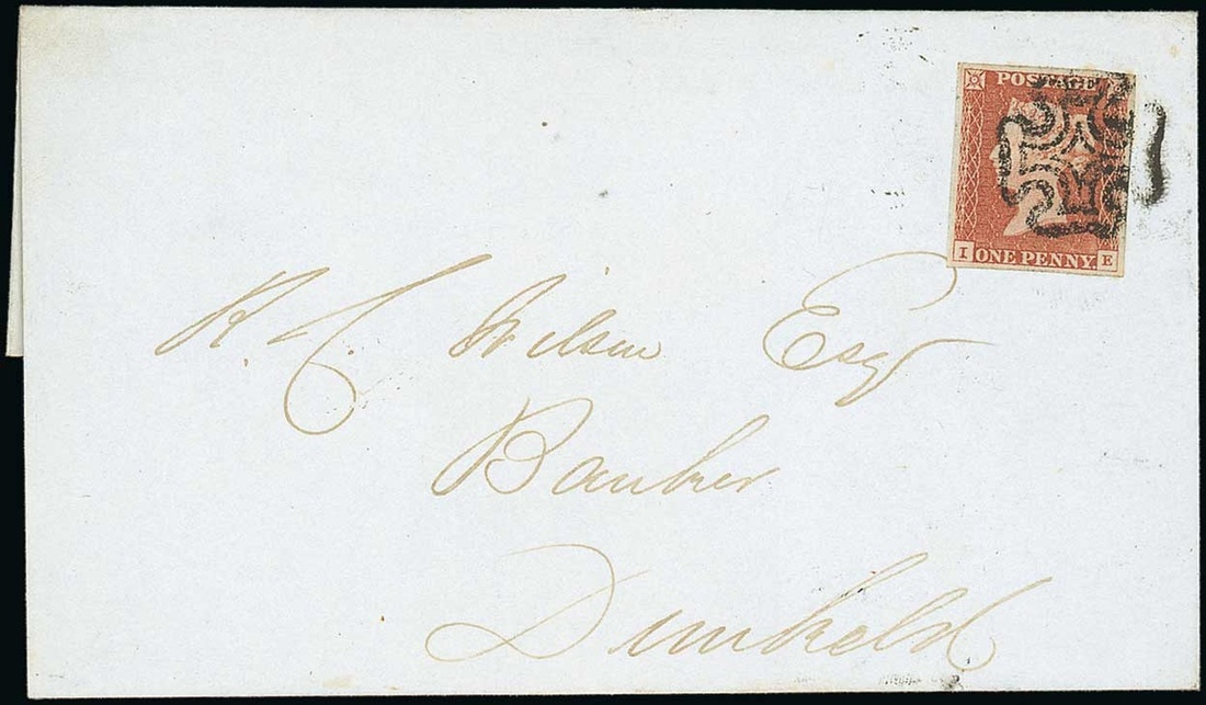 Plate 31: IE good to large margins all round, tied by superb and upright distinctive black Perth Maltese Cross to entire, dated 29 Nov. 1843, Perth (29.11) and Dunkeld (30.11) datestamps on reverse; fine and uncreased. Photo