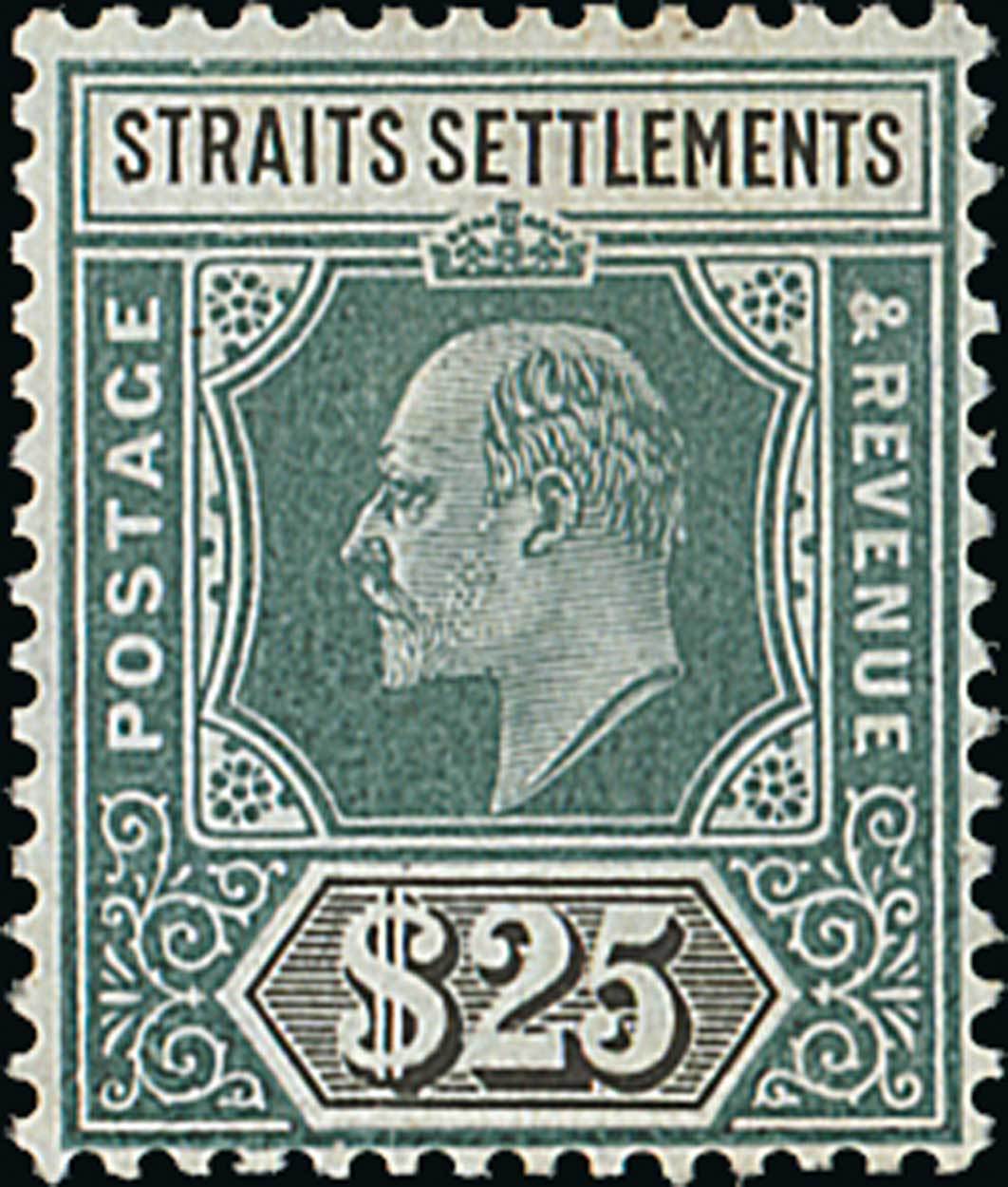 1904-10 $25 grey-green and black, fresh mint, faint diagonal crease (invisible from face), otherwise fine with rich original colours. S.G. 139, £3,500. Photo