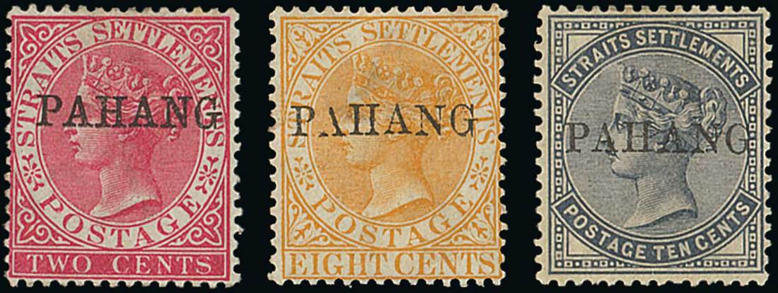 1889 2c. to 10c. set of three, mint; 2c. with gum creasing and 8c with central thin though a presentable set, the key 8c. with Stanley Gibbons handstamp on reverse and Ceremuga Certificate (2016). S.G. 1-3, £2395. Photo