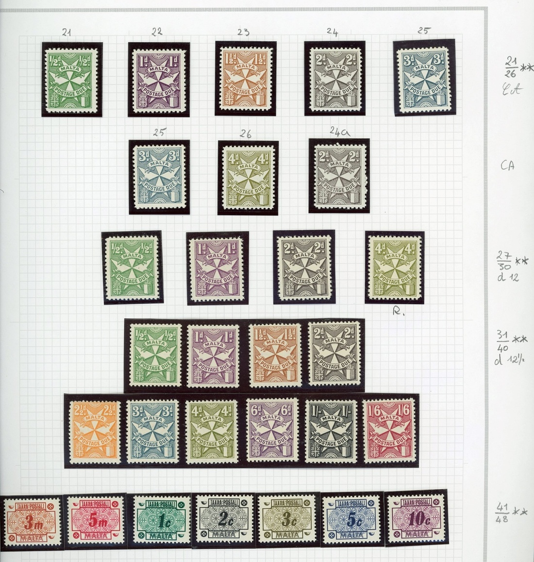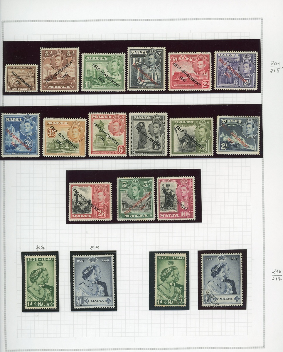 1860-1967 collection both mint and used, mounted on home made Marini pages, starting with a range of ½d. buff (18) including no wmk. issues in very mixed condition, complete standard run to 1921 with a mint and used set for each issue, 1922 Self-Government sets mint to 10/- (2), then broadly complete to 1967 with a mint and used set for most issues, with occasional Specimen sets, until PostageDues, which are present mint, and include a set of 1925 têe-bêche pairs. Condition mixed, particularly on the mint issues, still a fine basis for expansion with high catalogue value