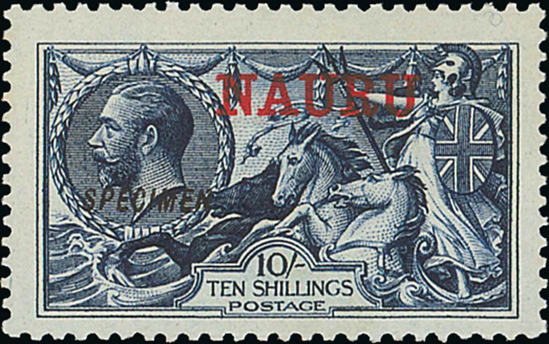 1916-23 Waterlow 10/- indigo-blue, variety overprint double, one albino and overprinted "