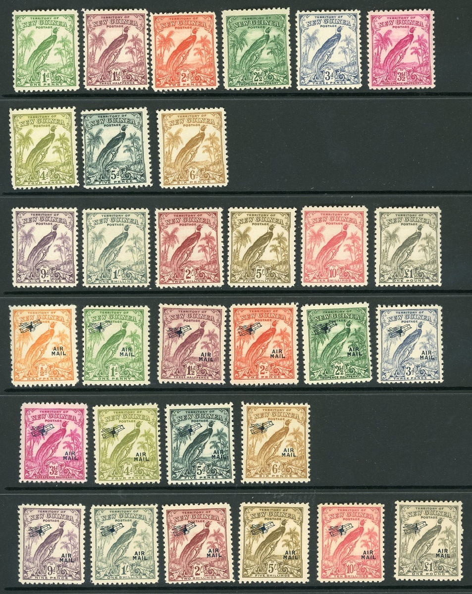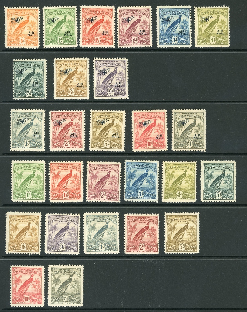 1931-40 fine mint collection of sets (6) on stock sheets comprising 1931-32 Birds of Paradise sets, all four including Air overprints, 1939 Bulolo ½d. to £1 set of fourteen and 1932-40 P.N.G. ½d. to £1 set of sixteen, all fresh and very fine. S.G. 150-203, 212-225, and 130-45, £2,875