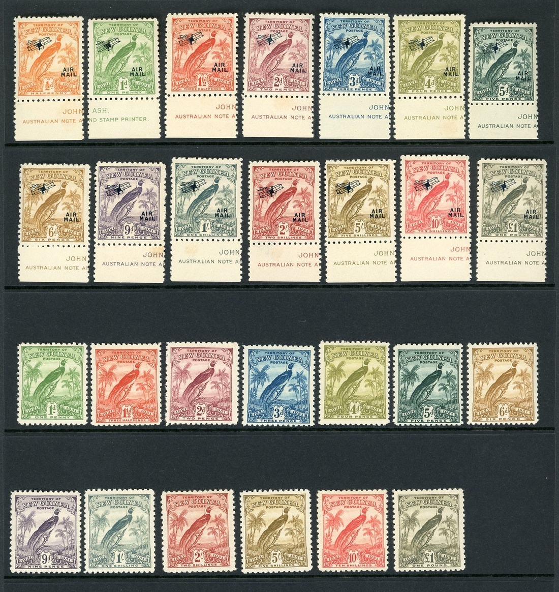 1931 1d. to £1 set of thirteen, fine mint, and Air ½d. to £1 set of fourteen, fresh unmounted mint, the latter set in matching lower marginal singles each with partial John Ash imprint. S.G. 150-62, 163-76, £725. Photo