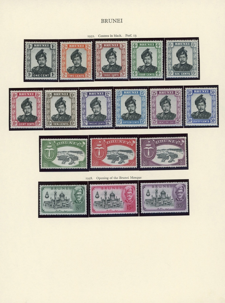 1883-1958 substantial mint collection (350+) on New Imperial pages, filled to an impressive level of completion, lacking only some of the early issues and a few of the rare high values and Red Cross overprints, and offered with Brunei complete as appears on the pages, lacking only the first issue. A handsome and valuable collection which contains many scarce Definitive sets. Faults to some of the earlier issues as almost always though the vast majority clean and fine. Cat. £12,000+