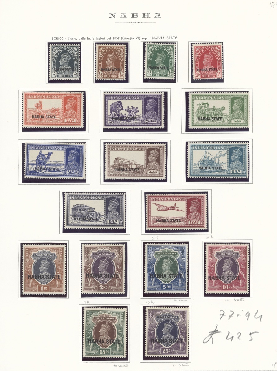 1938 3p. to 25r. (watermark inverted) set of eighteen, unmounted mint and slightly off-white gum though a fresh looking and attractive set. S.G. 77-94, £750+