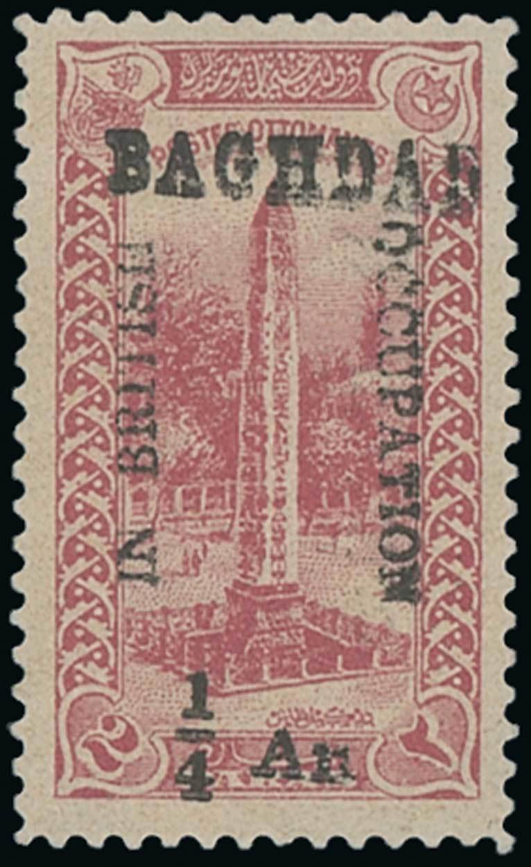 ¼a. on 2p. claret Obelisk, large part original gum; fine and fresh. S.G. 1, £450. Photo