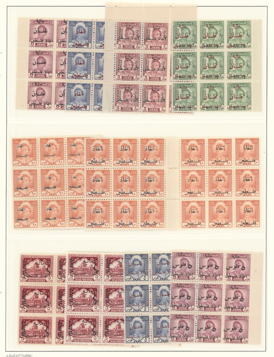1948-49 Aid for Palestine, eleven different in unmounted mint blocks of nine (3x3), fine and a rare group. S.G. 324, 325, 327, 328, 328b, 329, 330, 331, 332, 335, 337, £2,570+