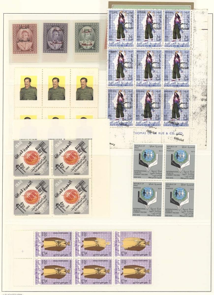 A selection of varieties, including 1948-49 Obligatory Tax Revenue 50f., 100f. and 200f., 1965 I.T.U. 20f. block of four with orange double, 1967 Costumes 20f. block of six, one with value omitted, 1971-72 Official 15f. costumes block of nine with three showing overprint double, etc., chiefly fine