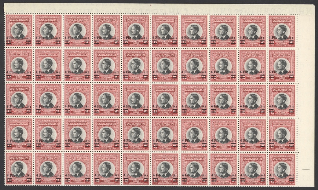 1963 4f. on 12f. black and carmine-red, unmounted mint block of 100 (10x10); folded through central horizontal perfs. and one with small tear, fine and scarce. S.G.541, £2,000+