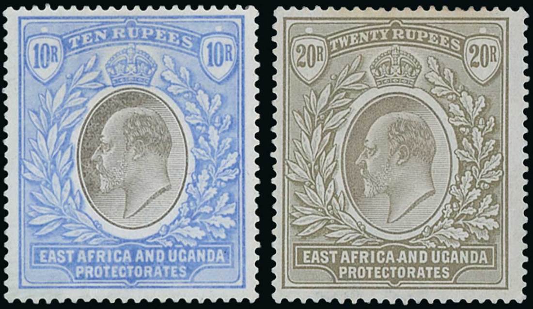 1903-04 10r. grey and ultramarine and 20r. grey and stone, mint; the 20r. with a little light stains at top, the 10r. fresh and fine. S.G. 14, 15, £1,250. Photo