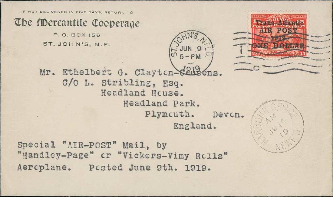 St. John's Mail: 1919 (9 June) "The Mercantile Cooperage" envelope (with enclosure) with typewritten "Special