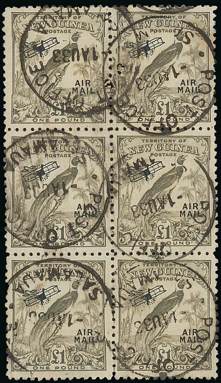 1932 (Aug.) Air £1 olive-grey block of six (2x3), each cancelled with