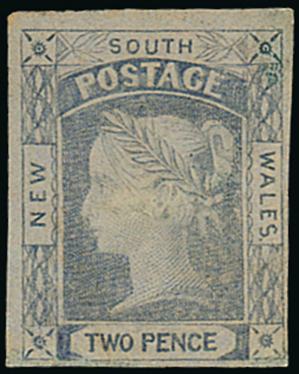 1851-55 Laureated, imperf. 2d. greyish blue Pl. I fine impression on blue to greyish medium paper, close to good margins, fine unused without gum. S.G. 55, £1300. Photo