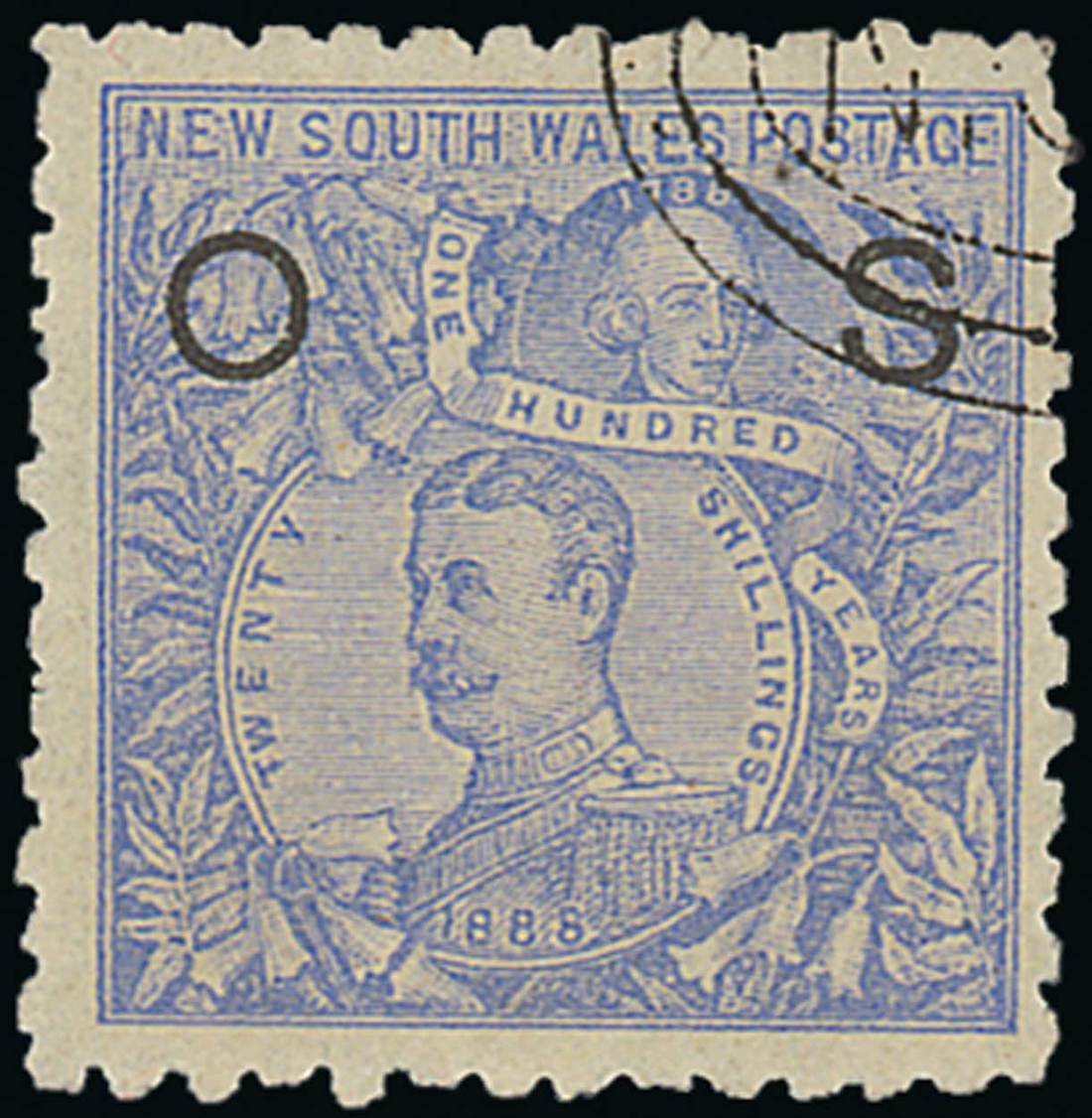 1890-91 20/- cobalt-blue, neatly cancelled to order in one corner, fine. S.G. O50. Photo