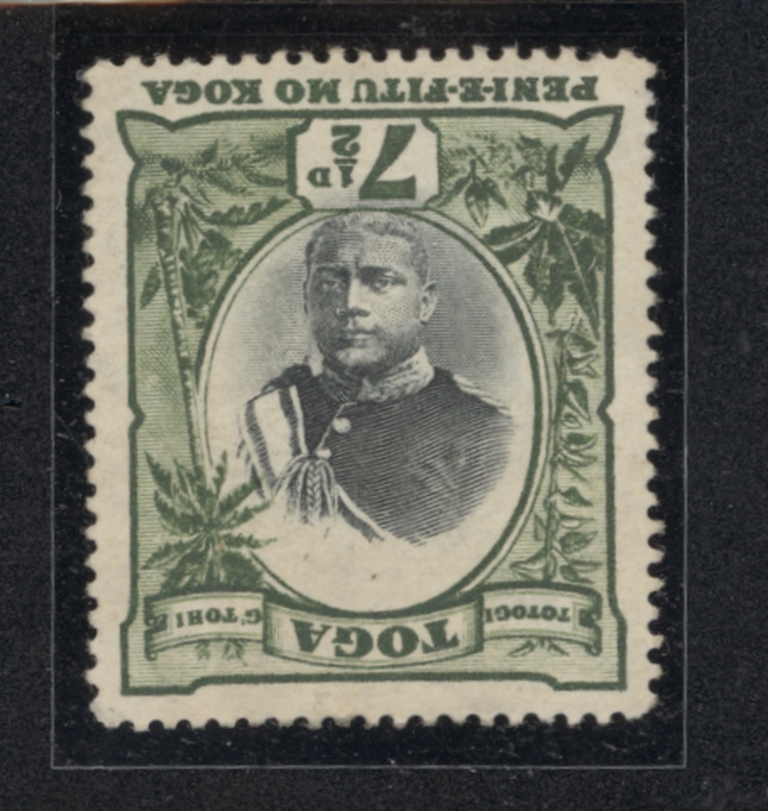 1897 7½d. black and green, variety centre inverted, large part original gum; light crease in one corner, otherwise and an attractive example of this rare inverted centre variety. S.G. 48a, £9,000. Photo