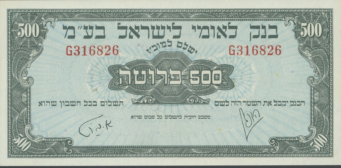 (x) Bank Leumi Le-Israel, 500 prutah, ND (1952), red prefix G, green and pale blue, Hoofien and Barth signatures
