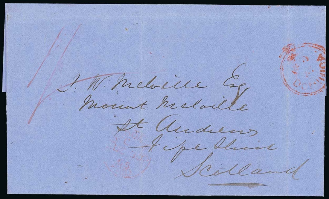 1865 (11 Dec.) entire letter ex the Melville correspondence to Scotland, rated "1/-" in red, showing almost complete