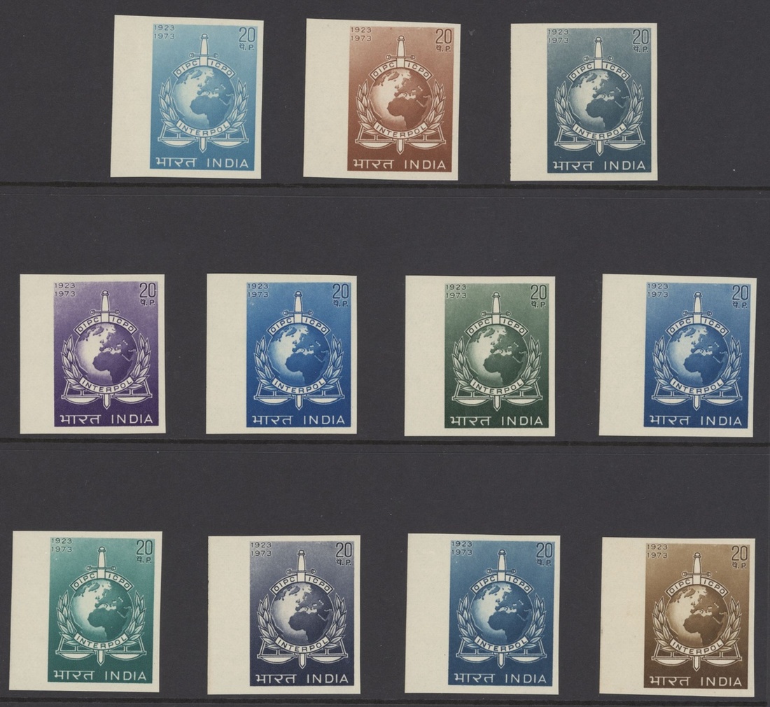 1973 Interpol 20np., eleven imperforate colour trials, all marginal from the left of the sheet and unmounted mint; fine