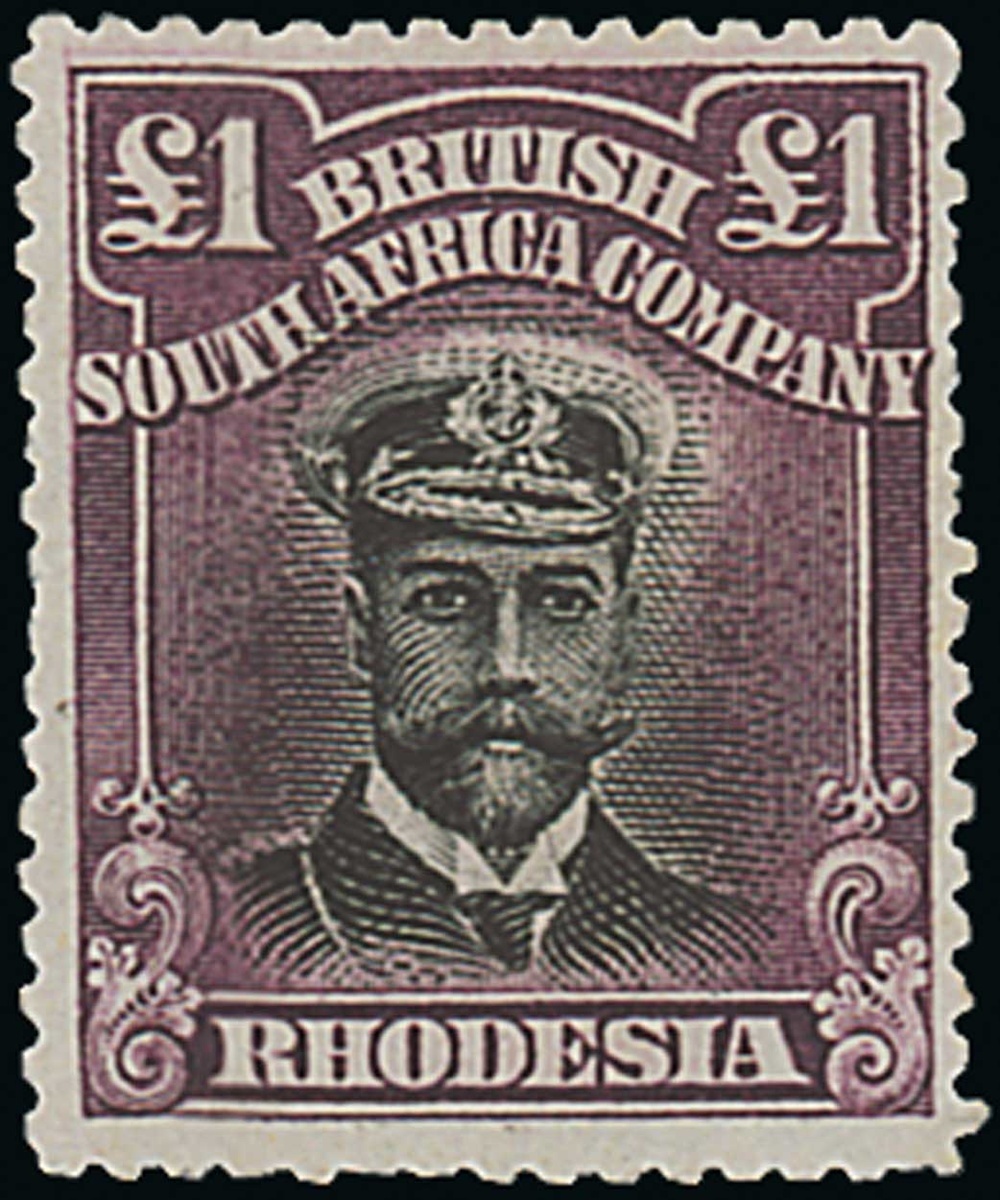Die II, perf. 15 £1 black and purple, part original gum; a couple of shortish perfs. at foot, otherwise sound. Scarce. S.G. 254, £1,800. Photo
