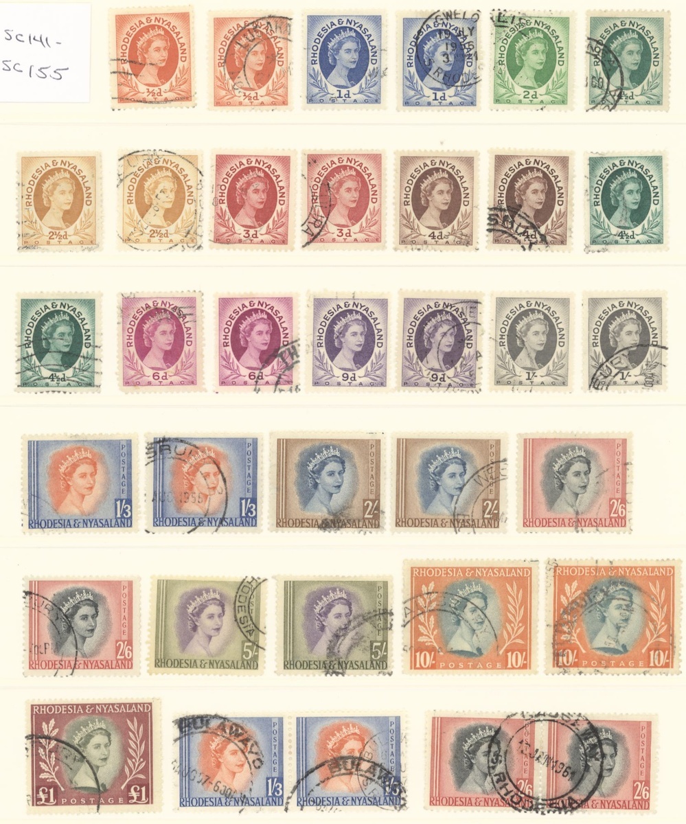 1954-63 used collection with the basic issues, including coil stamps and Postage Dues, complete, additional items include 1955 Falls (2), 1960 Kariba Dam and 1962 Airmail sets in blocks of four; generally fine