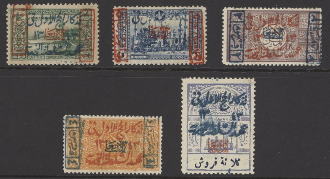 1925 Pilgrimage Commemoration set of five, large part, slightly toned original gum; scarce. Only 800 sets overprinted. Ceremuga Certificates (2005). S.G. 210-214, £1,395. Photo