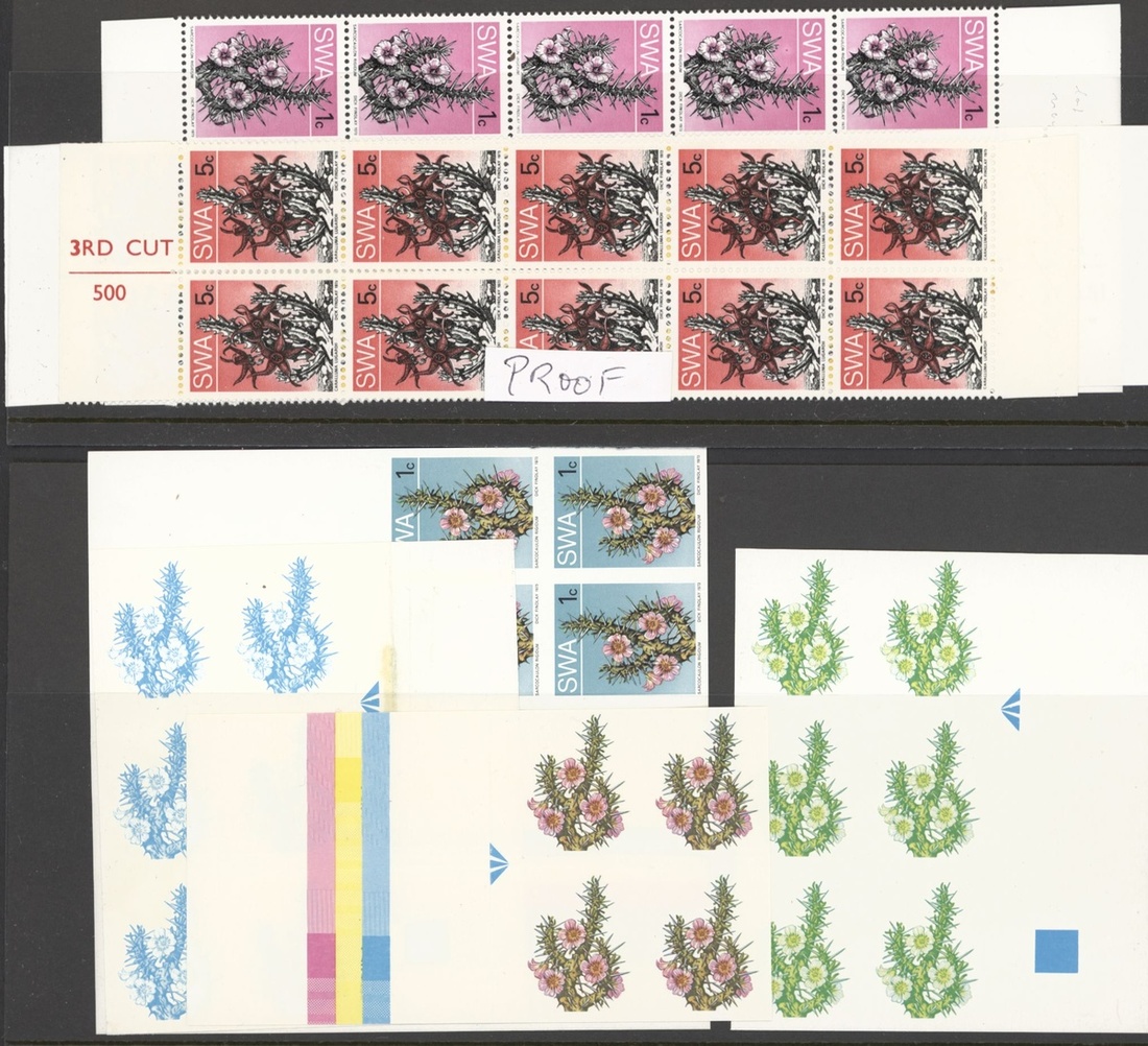 1973 (Sept.) Succulents selection of proof items with set of sixteen imperforate pairs, 1c. set of three progressive proofs and as issued, all in imperforate blocks of four, and coil stamps 1c., 2c. and 5c. perforated blocks of ten (2x5), the 2c. imperforate horizontally; fine. Cat. R. 21,800+