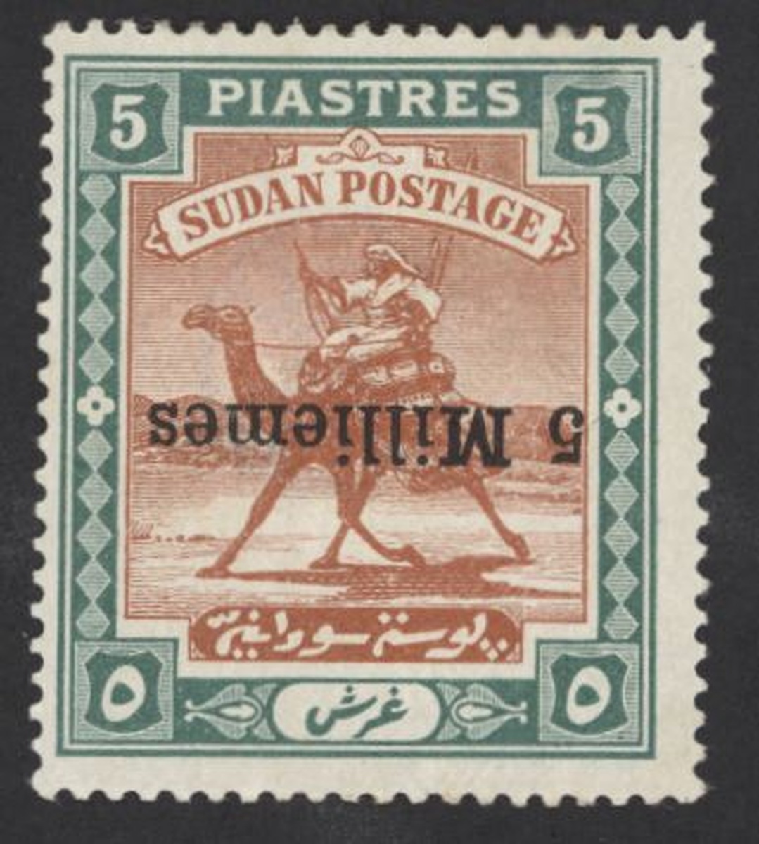 1903 5m. on 5pi. brown and green, variety surcharge inverted, large part original gum; fine. Signed Helbig. S.G. 29a, £325