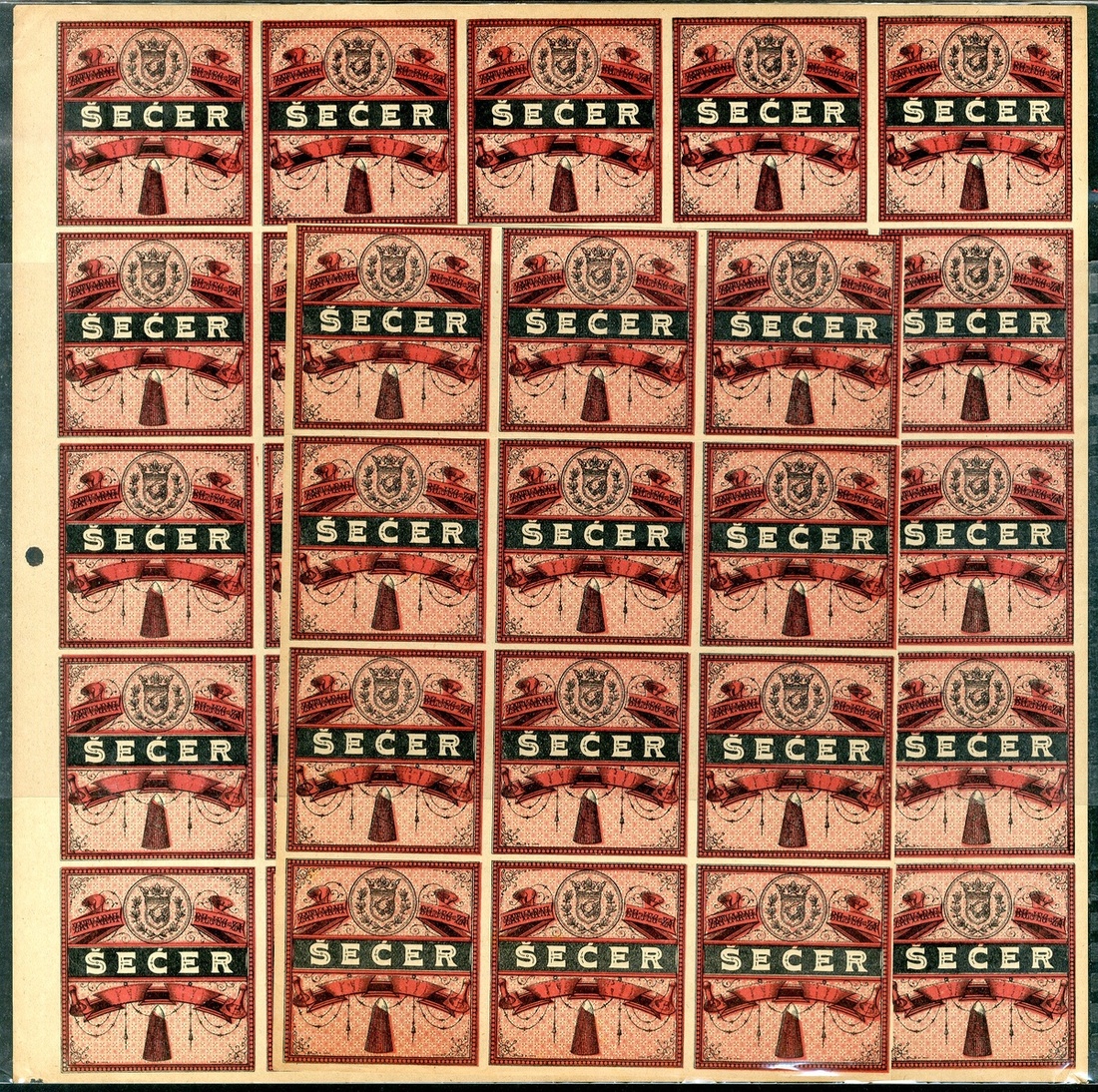 1917 Sugar Tax label blocks of 12 (3x4) and 25 (5x5), unused, fine