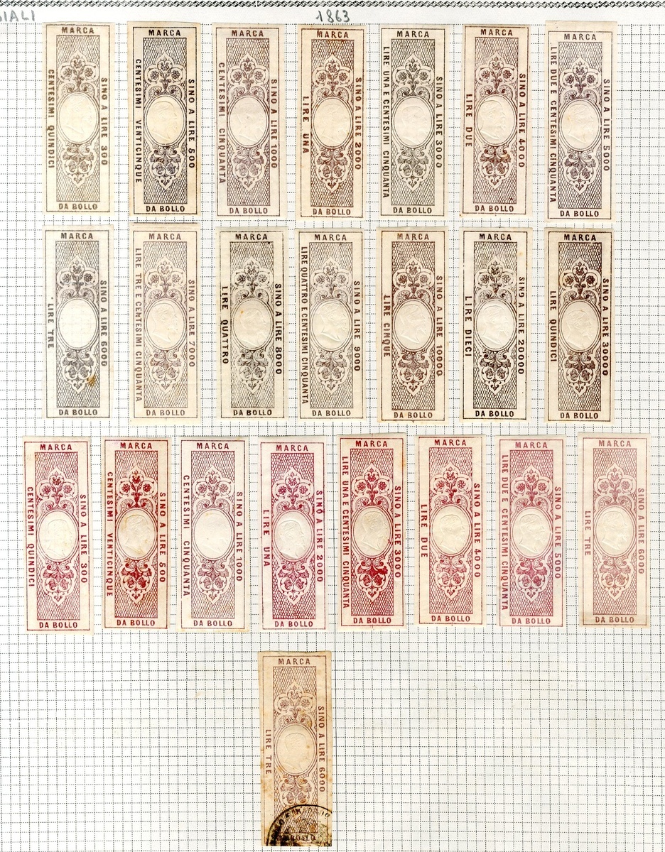 Commercial Tax: 1863-2000 mint and used collection (500+) on pages including 1863 proof sheet, errors, 1863 15c. to 15L. two proof sheets of fourteen, 10L. and 15L. mint, 10L. and 15L. forgeries, 25c. to 15L. (12 values) imperforate, 1866 30c. on 25c. surcharge inverted, 12L. on 4L. and 15L. on 4L. 50 forgeries, 1908 Postage Dues, later issues with errors, etc., chiefly good to fine