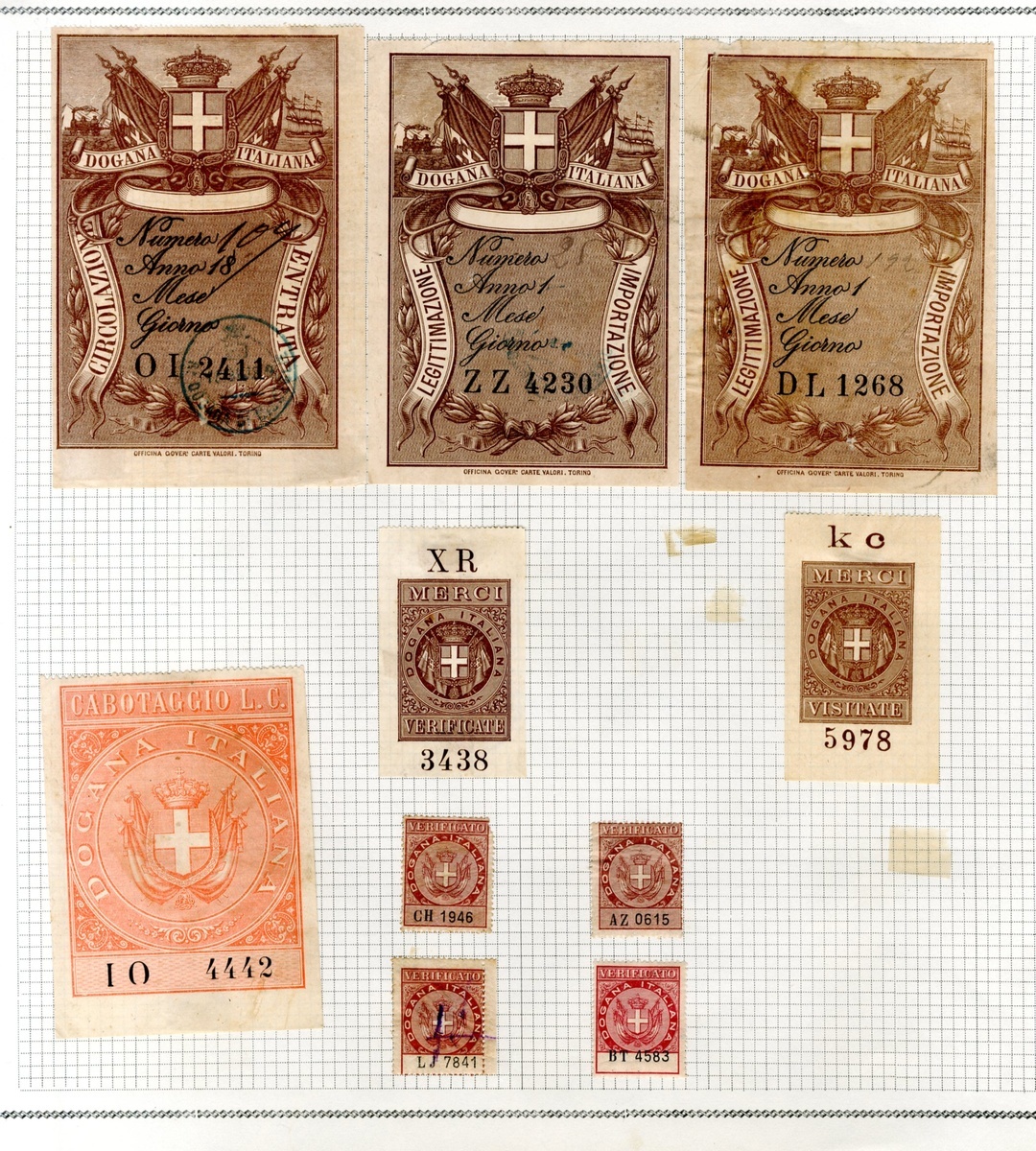 Customs: Mint and used selection (30) including 1870 Circolazione, Legittimazione and Cabotaggio, etc., mixed condition
