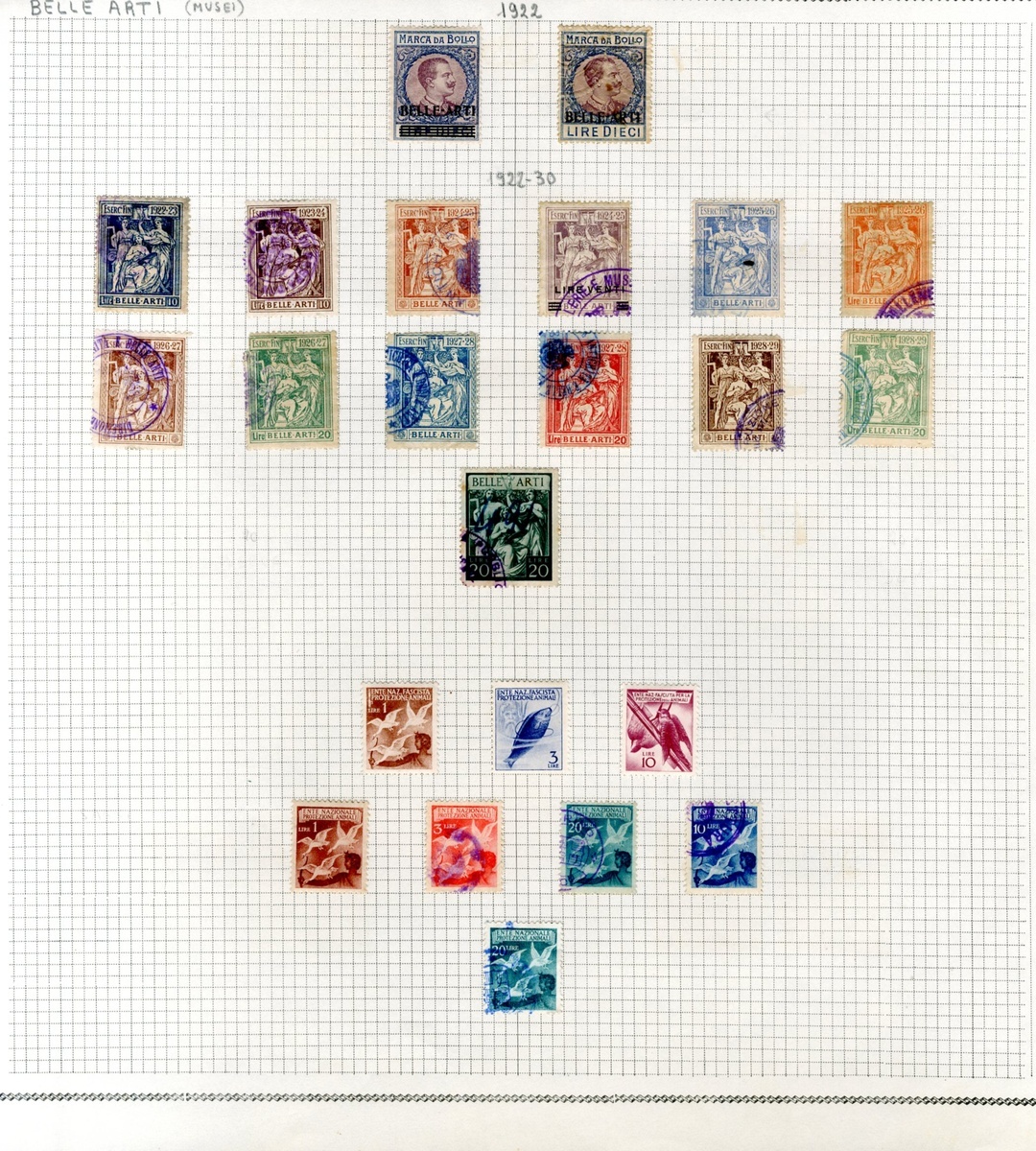 Fine Art and Cinema: Mint and used collection (70) on pages including 1922 10L. (both), 1922-30 series with twelve different, 1946 20L. green, Catastali1872 2L. centre inverted, Cinema 1917 5c. on 80c., etc., mixed condition