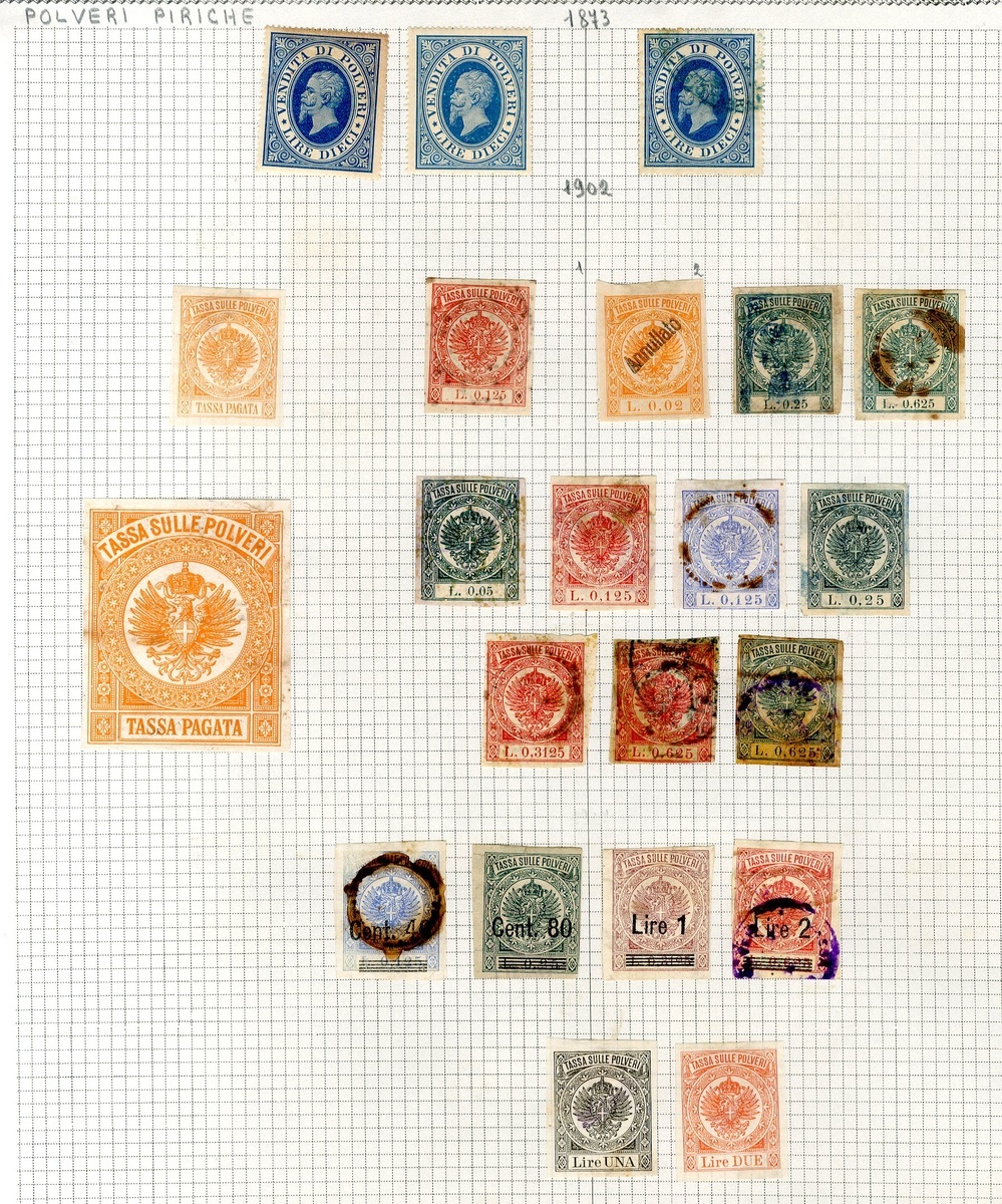 Gunpowder: Mint and used selection (22), including 1873 10L. (2 mint, one used), 1902 Tassa Pagata, 1924 surcharge set used, 1924 1L., 2L., etc., chiefly good to fine