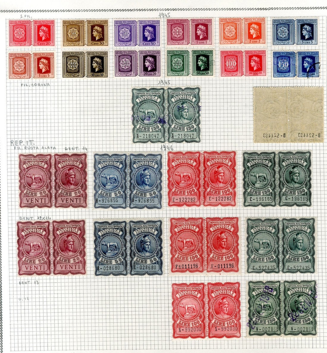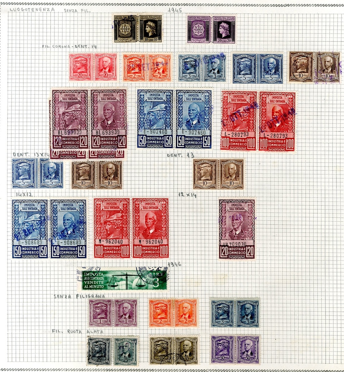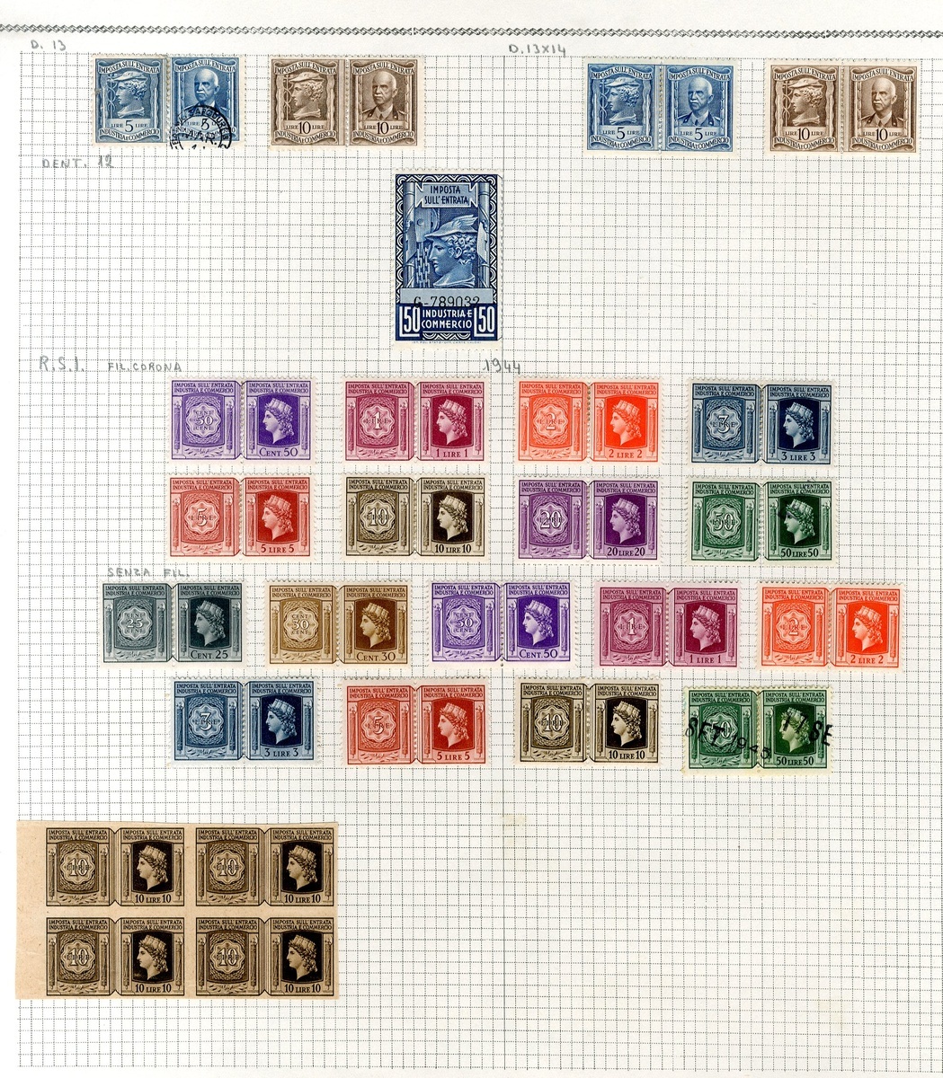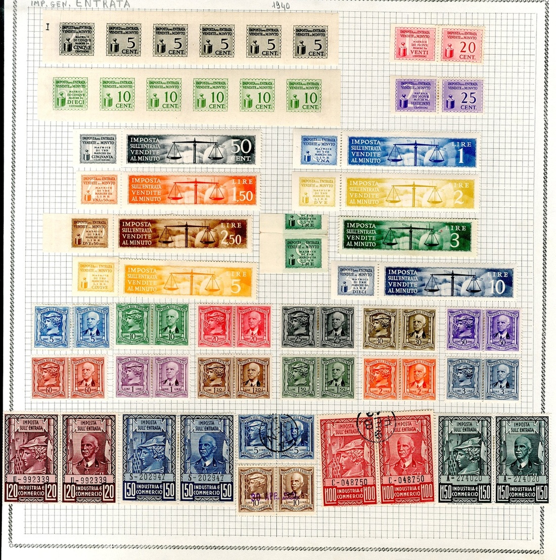 Sales Tax: 1940-63 collection (250+) including 1940-42 20L. violet mint (Biondi Certificate 1992), later issues, etc., chiefly good to fine