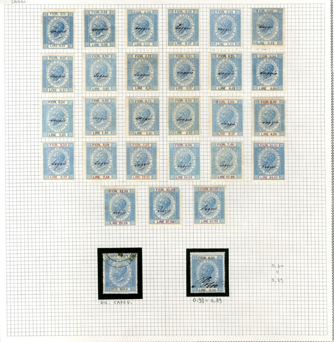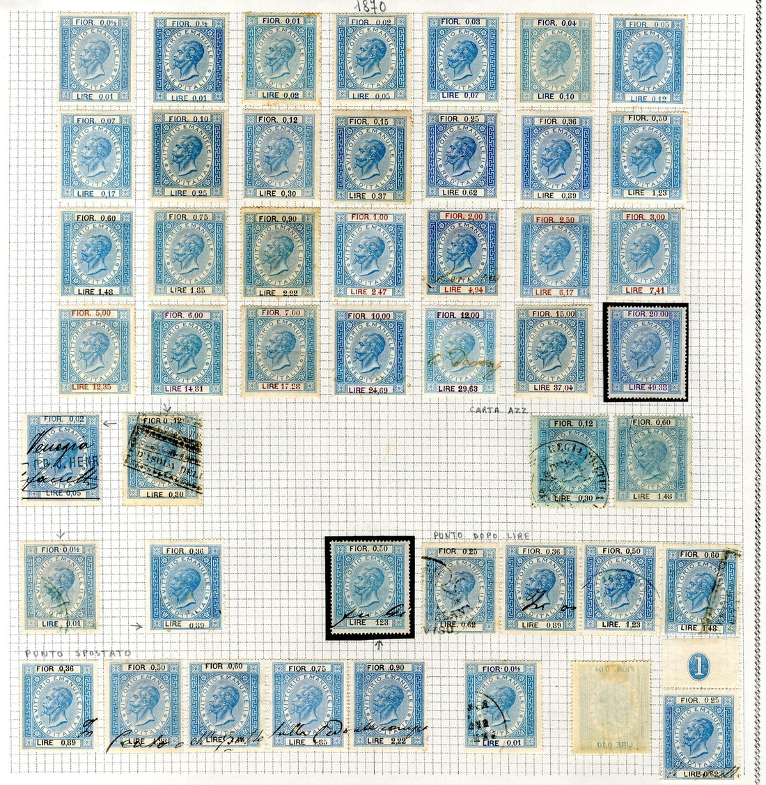 Transizione: Mint and used collection (1,000) including 1866 0.01 Fior and 0.07 Fior imperforate, 0.01 Fior and 0.07 Fior reconstructions of 100, 20Fior reconstruction of the five types, 1867 0.02 Fior reconstruction of 200, 1868 0.02 Fior partial reconstruction of 194, 1870 0.36 Fior centre inverted, 0.36 Fior error Lire 0.98 for 0.89, 20 Fior (15 arranged as a block) on piece, errors, forgeries, etc., chiefly fine. An amazing study