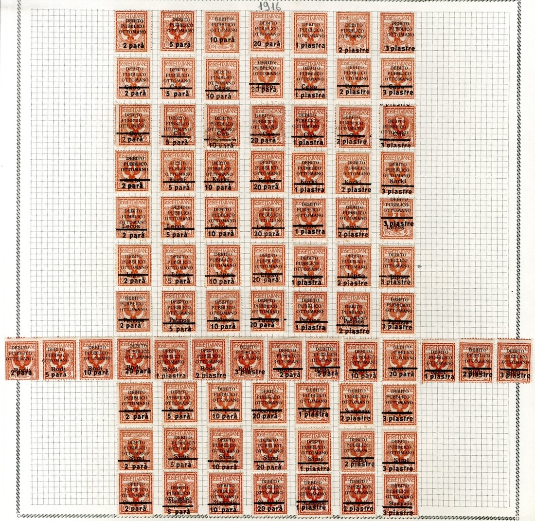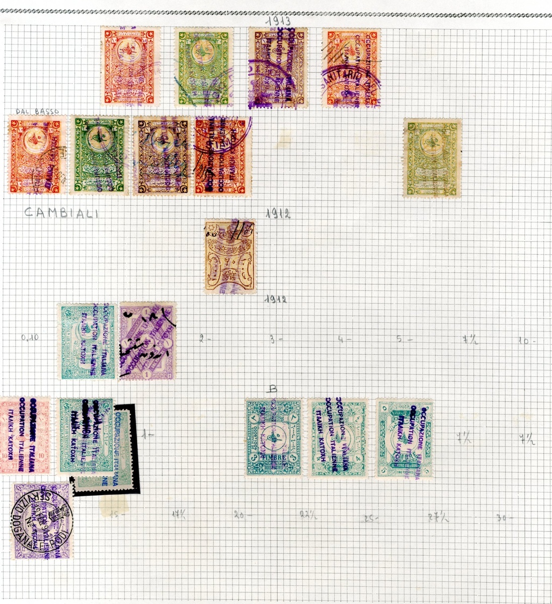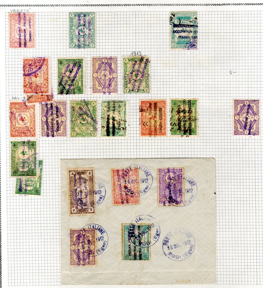 Aegean Islands: Mint and used collection (220+) on leaves including 1912-13 handstamps (80), 1916 Comando Copro 10pa., 1pi., 2pi., 1912 Debito Pubblico overprints (13), 1916 surcharge sets for the various islands, 1916 with values to 15pi., 1921 to 90pi., etc., chiefly fine