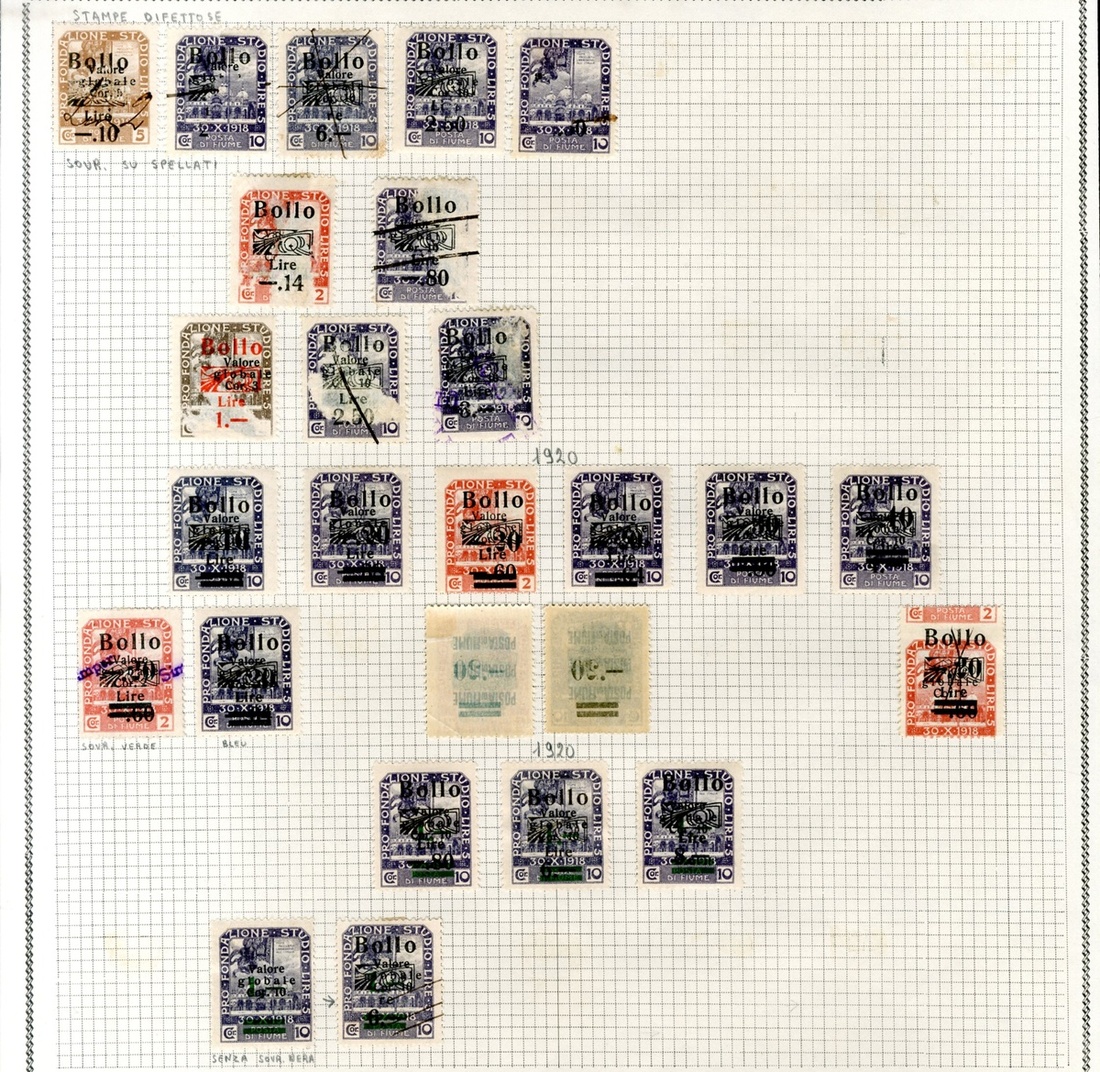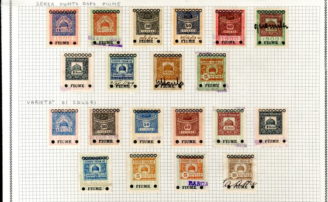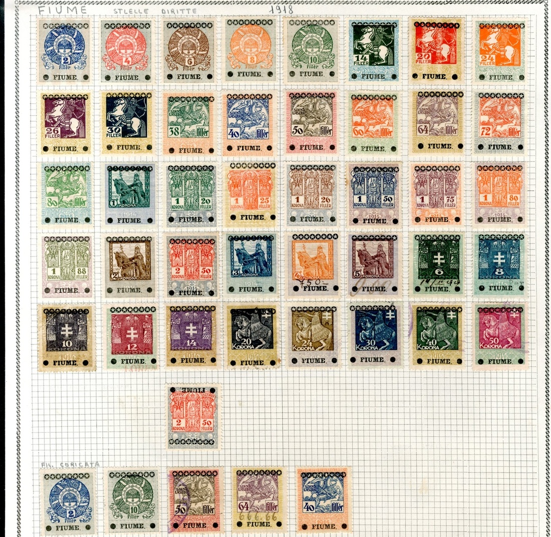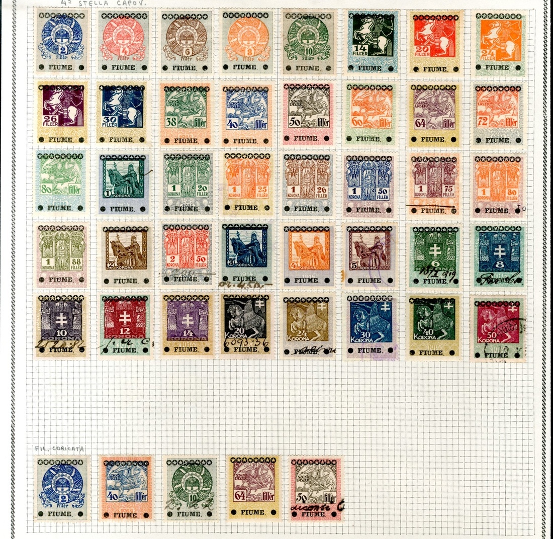 Fiume: Collection on leaves, hundreds including 1919 surcharges on Hungarian fiscals (250+), 1919 8c. to 50c., 1920 to 1922 Bollo surcharges, Contratti di Borsa with many varieties, etc., chiefly fine. An interesting and colourful lot which would be very difficult to duplicate
