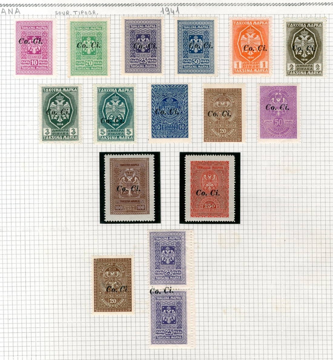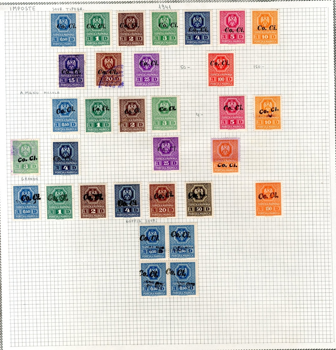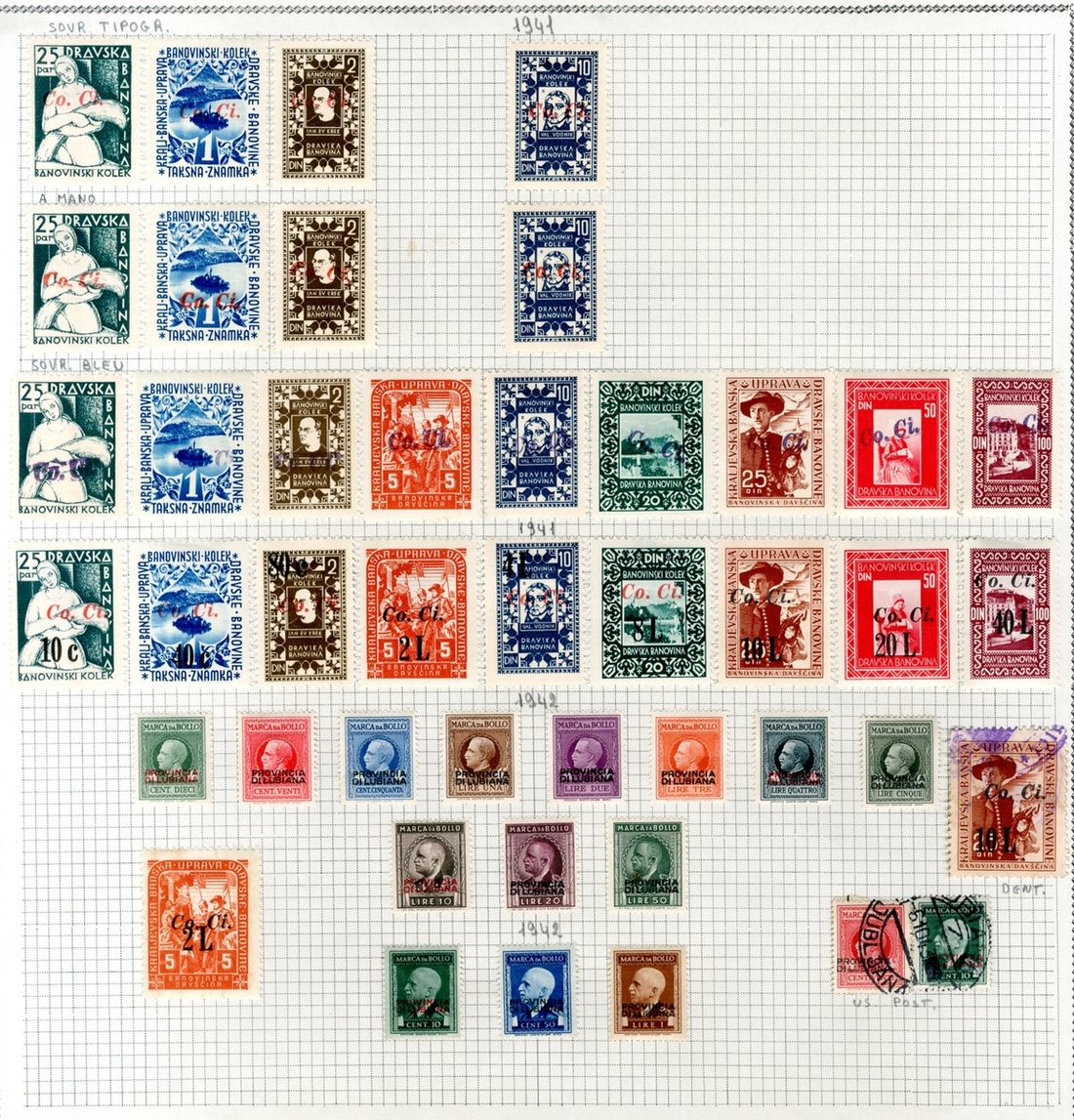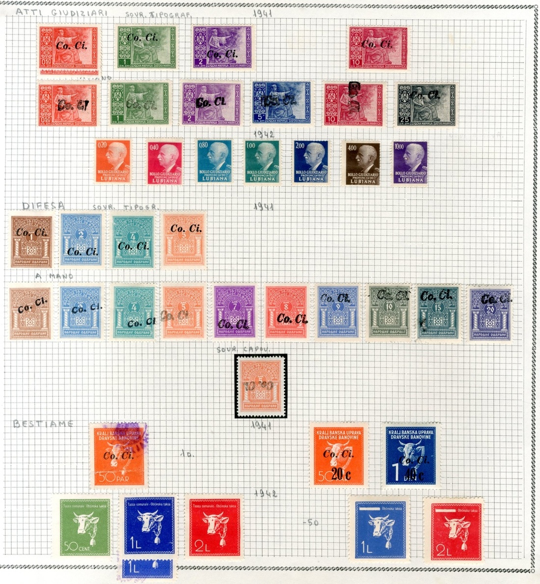Occupation of Lubiana: Collection (170+) on pages including 1941 typographic overprint 10pa. to 250d., 1941 handstamped to 250d., Fascette Dazio Erariale 1941 (-) red and (-) brown, etc., chiefly good to fine