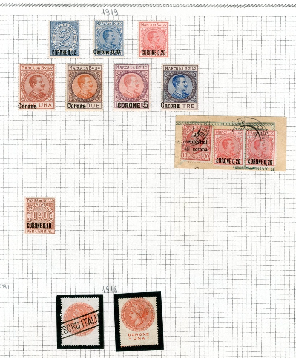 Trieste Zone A; Terre Redente 1919 0.02c. on 2c. to 5c. on 5L., Canbiali 1919 0.40c. on 40c., 1919 Red Cross (-) mint and used, 1c. (2), 2c., 10c., 20c., Fiammiferi 1918 (72 different), etc., chiefly fine