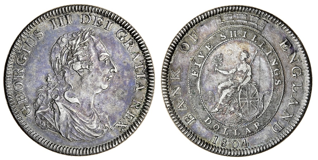 George III (1760-1820), Bank of England, Dollar, 1804, laureate, draped and cuirassed bust right, top leaf to upright of