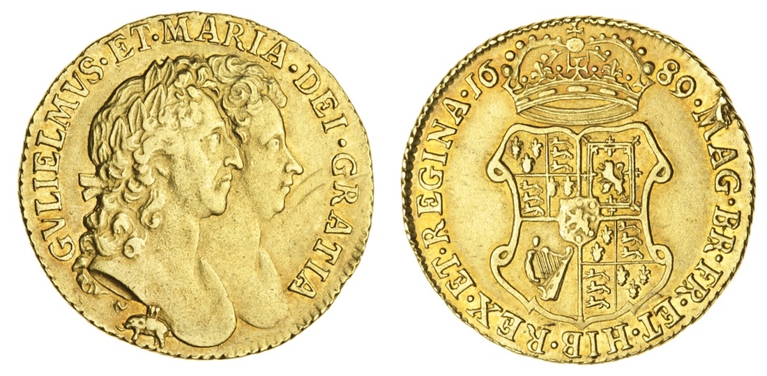 William and Mary (1688-94), Guinea, 1689, conjoined laureate busts right, elephant and castle below, rev. crowned shield (MCE 149; S.3427), two unfortunate scuffs before face, and a flaw above